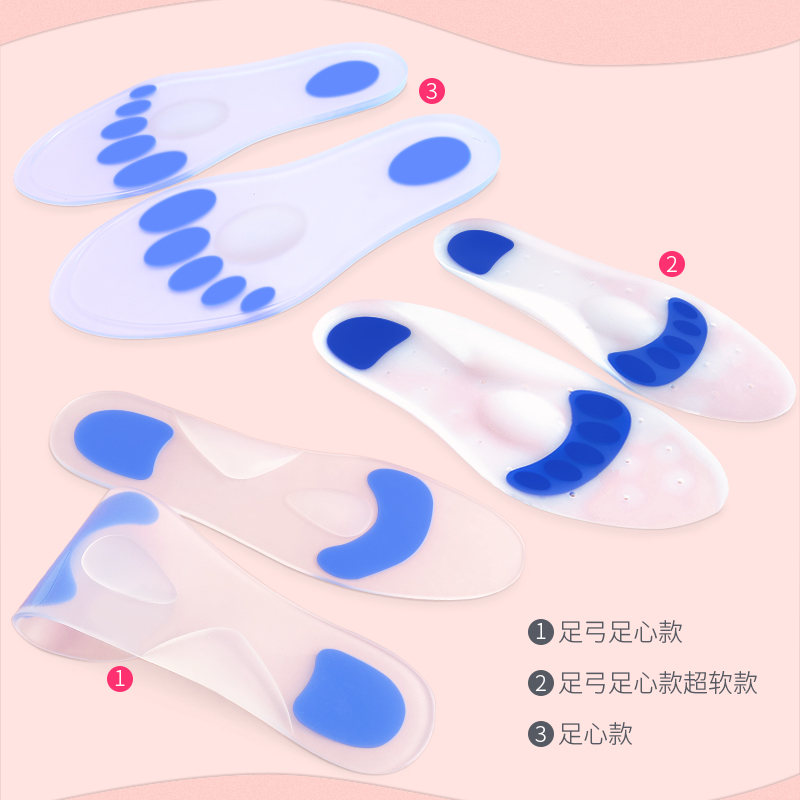 Silicone insole foot arch damping soft ultra soft overwork for long standing without tired deity Flat Flat Foot support cushion thickened full palm cushion