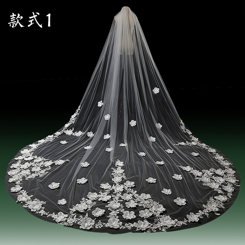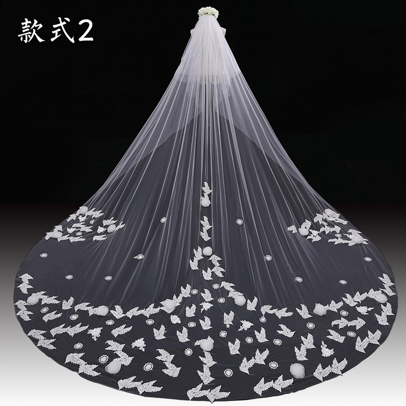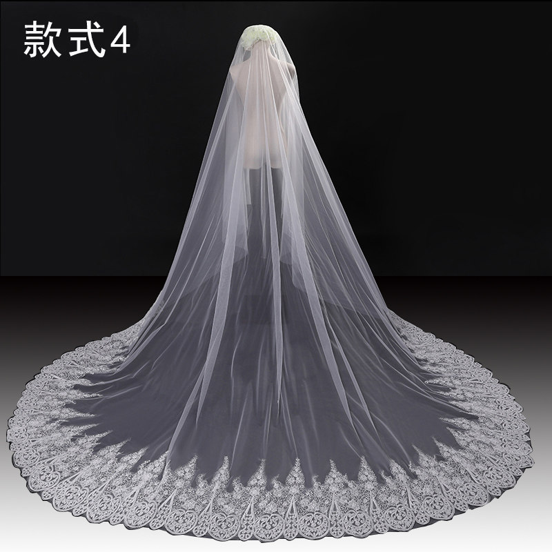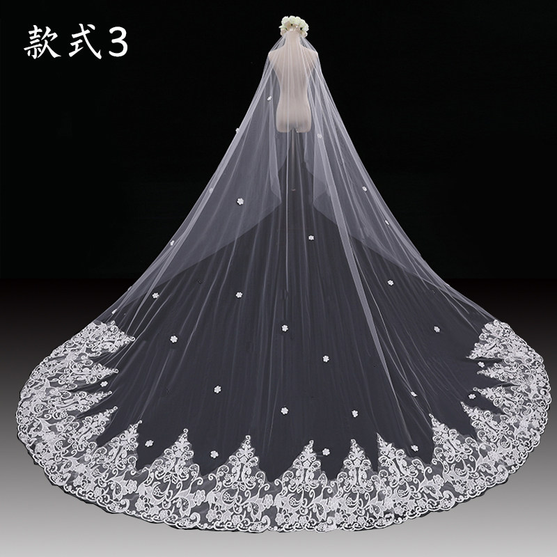 New head yarn trailing soft yarn bridal cover headwear European-style minimalist big head yarn bride wedding dress Korean style extra-long 3 m