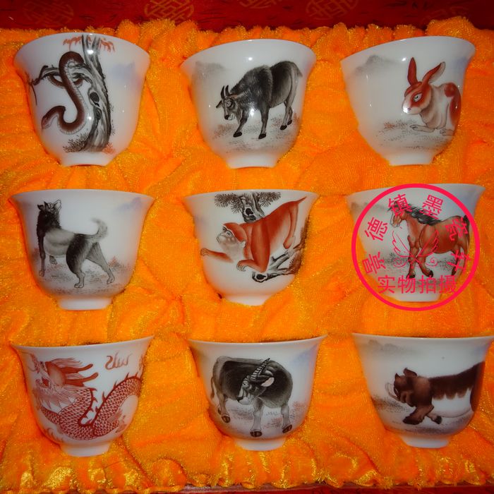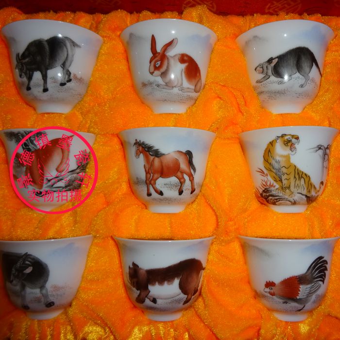 Jingdezhen Cultural Revolution factory goods pottery pastel hand painted Zodiac Zodiac Zodiac tea cup Wine cup tea cup set
