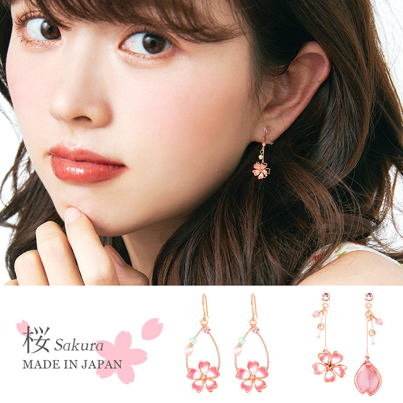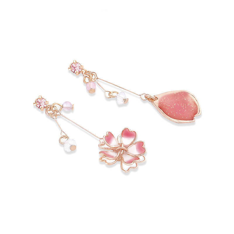 OSEWAYA ear clips without ear holes female Japanese and Korean earrings asymmetric cherry blossom earrings design ear needle jewelry