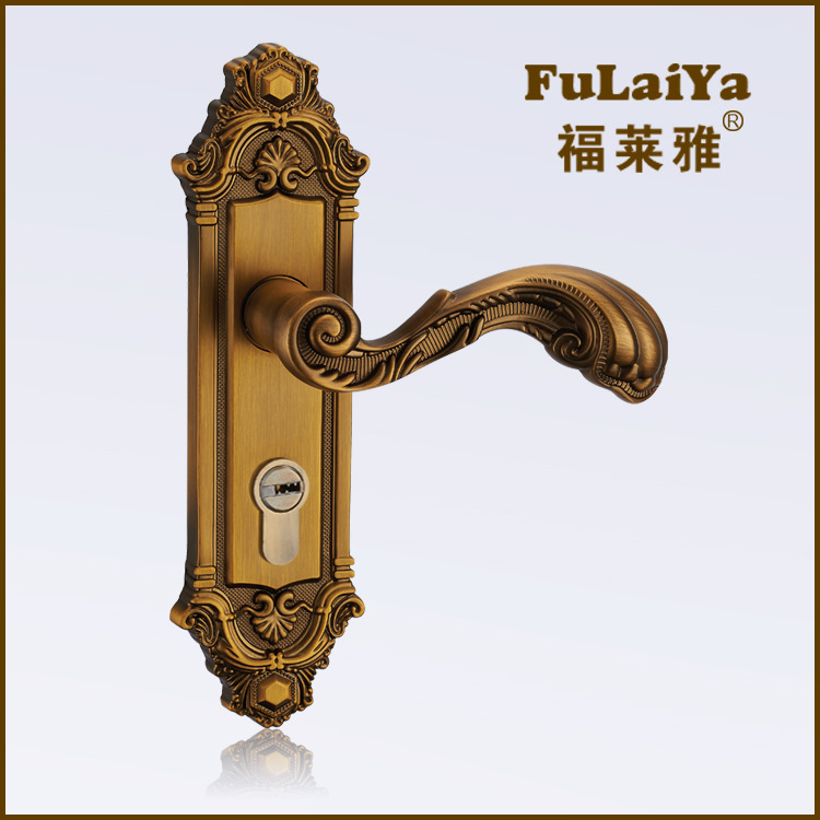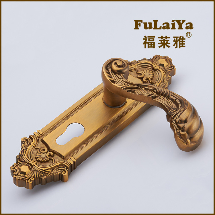 Eurostyle home universal door lock mute yellow ancient bronze single tongue handle door lock indoor solid wood door lock bedroom lock