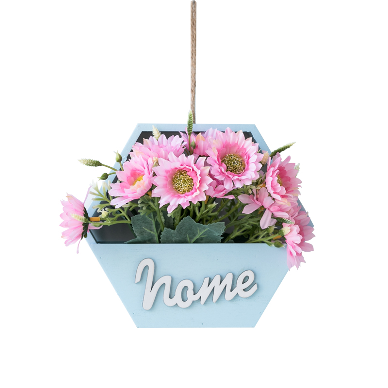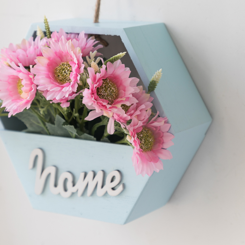 1 x white starlight white wooden house wall hanging 1 x yellow jump orchid chrysanthemum blue wooden hexagon wall hanging 1 x Pink jump Orchid chrysanthemum hexagon pink wall hanging 1 x Sakura small fruit powder hexagon