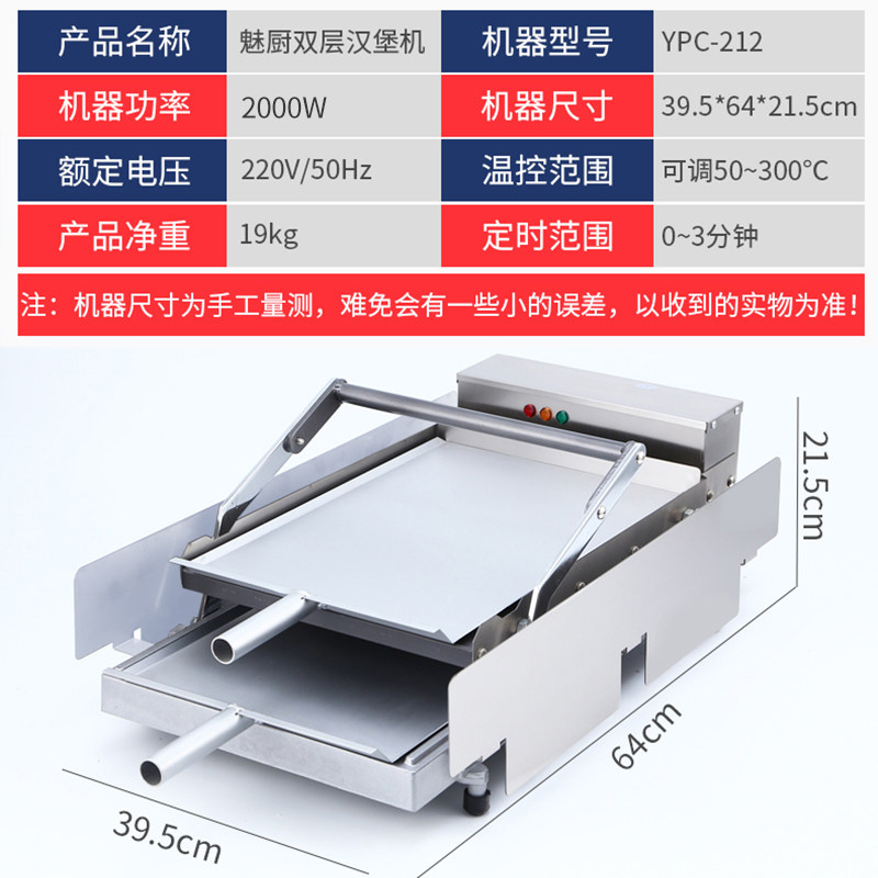 Charm kitchen burger machine commercial small burger shop equipment heating machine double-layer hamburger oven automatic toast machine