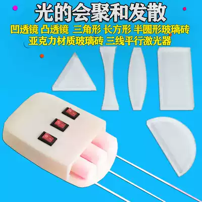 Parallel laser three optical paths, magnetic three-line light source, junior high school physics optical teaching instrument, experimental equipment, magnetic adsorption, acrylic, cylindrical convex lens, concave lens, glass brick, semicircular sink