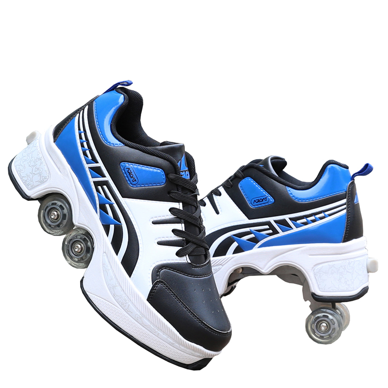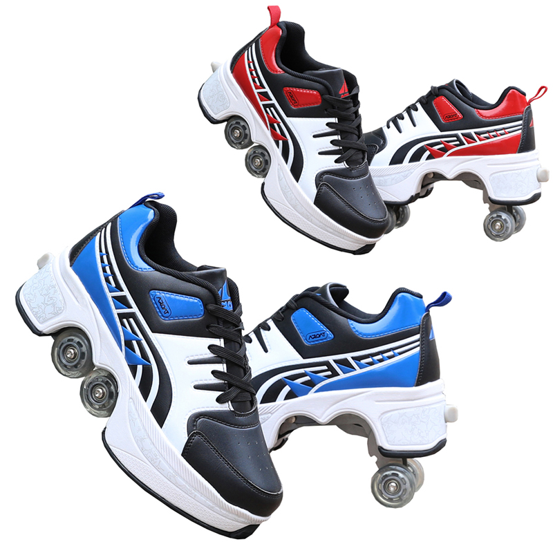 Agloat deformation shoes Student explosion walking shoes Adult roller skates Men's and women's four-wheeled riot walking shoes pulley skating shoes wheels