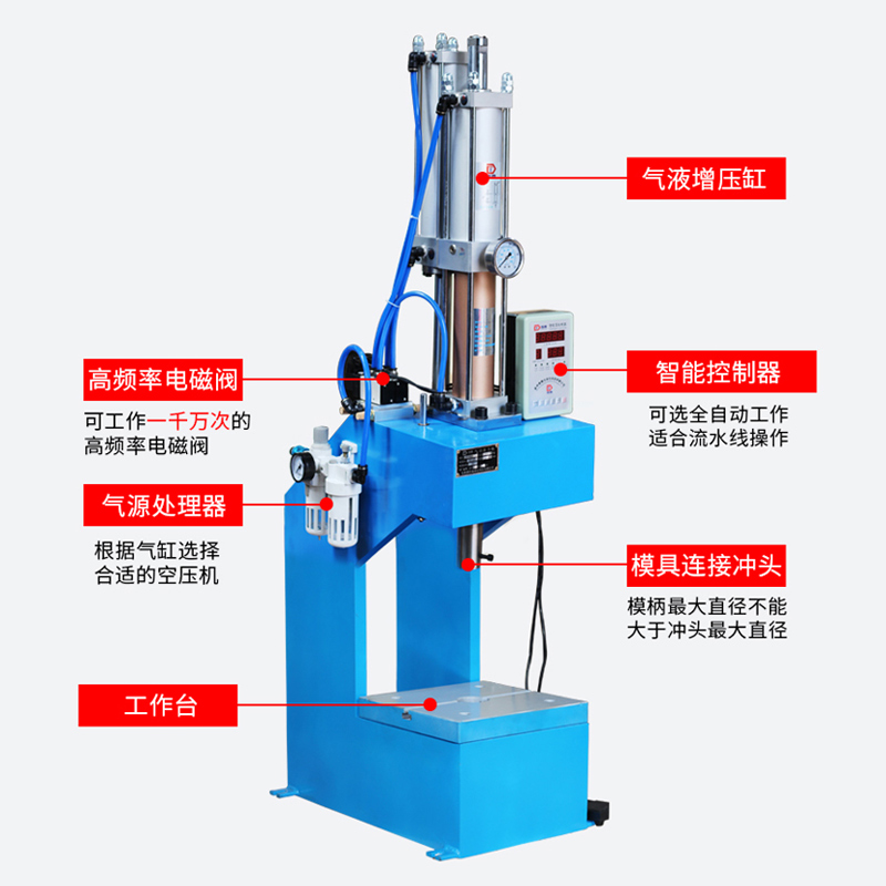 C-type pneumatic punching bed riveting 500kg1T20 tons of gas liquid increasing press bearings pressed into the table press can be customised