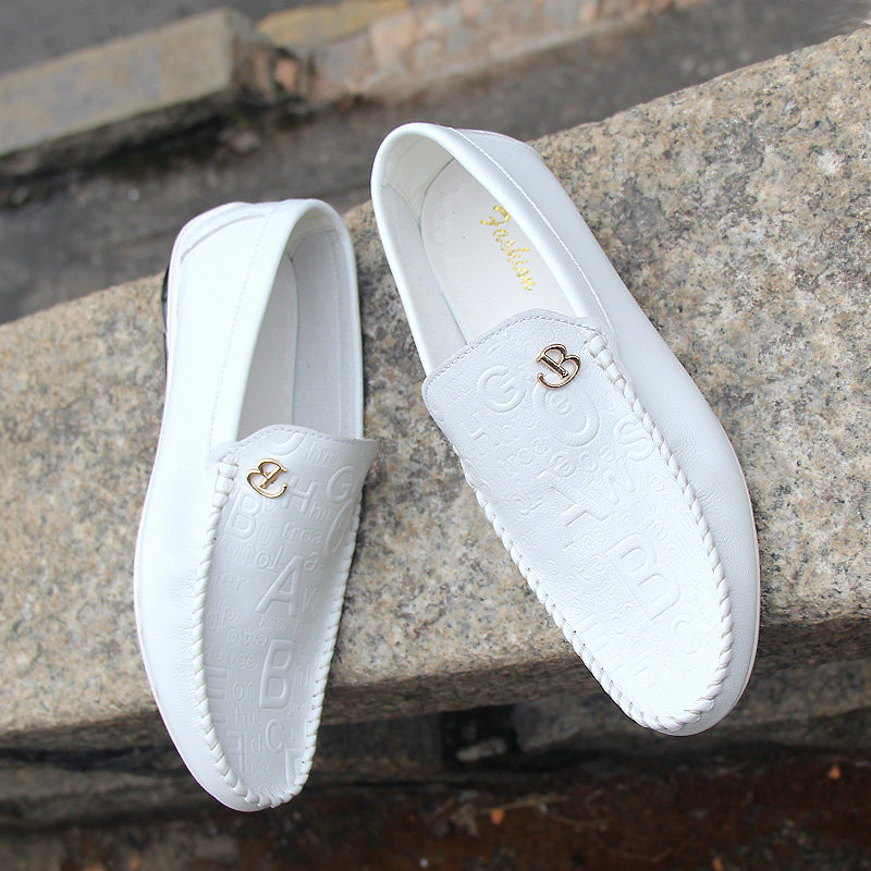2022 new net red white beanie shoes men's Korean version all-match autumn breathable trend men's casual leather shoes lazy