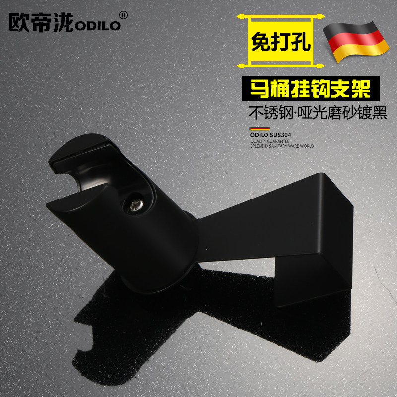 O Emperor Taki Bathroom 304 Stainless Steel Black Shower Head Fixed Base Wire Drawing Free hole Toilet Hook bracket