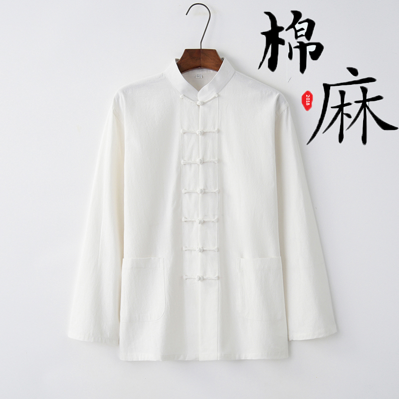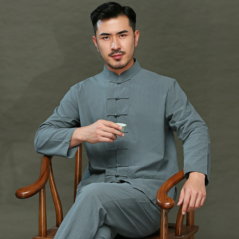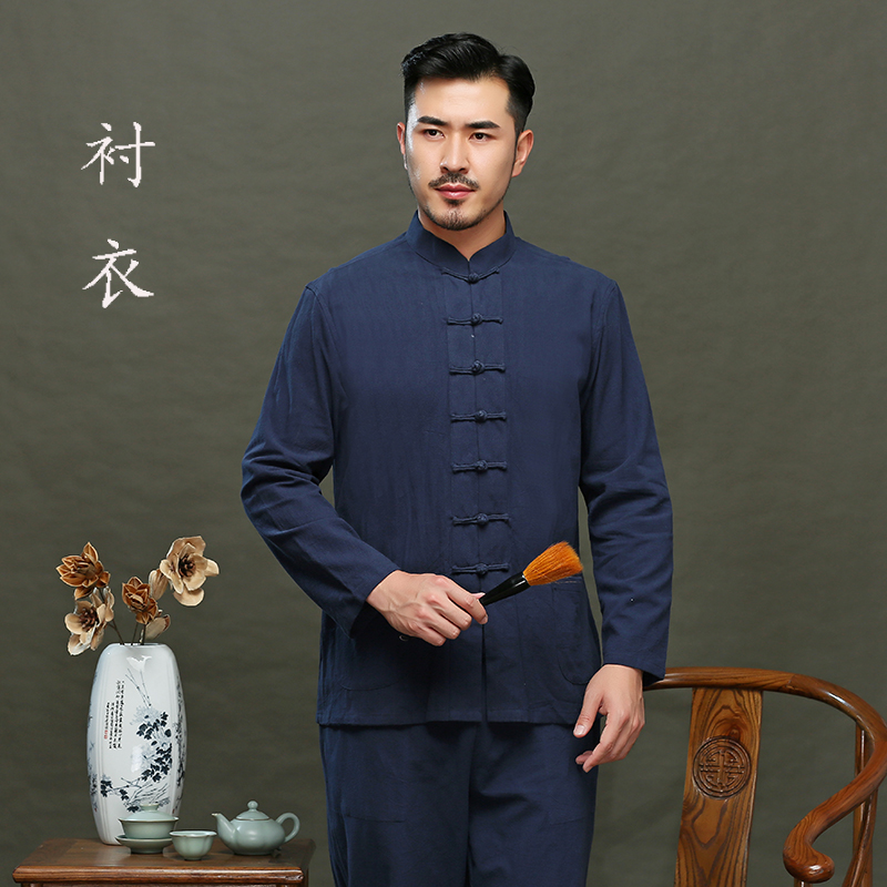 Chinese Tangwear Young Man Retrospective Chinese Men's Cotton Cotton Cotton Cotton Shirt Blade Blade Men