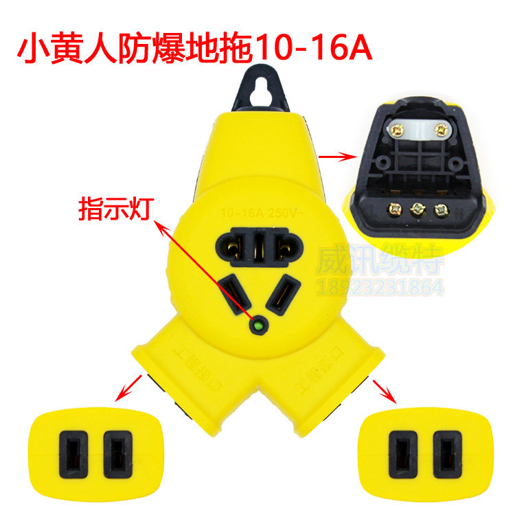 Without line explosion-proof herringbone ground drag plug-in power socket yellow black transparent high-power wiring board 10A16A plug