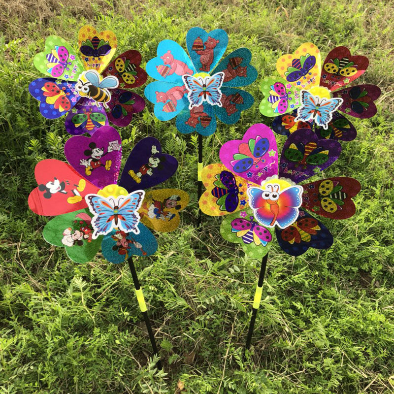 Six-color windmill cartoon plastic small windmill outdoor sequin windmill decoration kindergarten gift stall children's toys