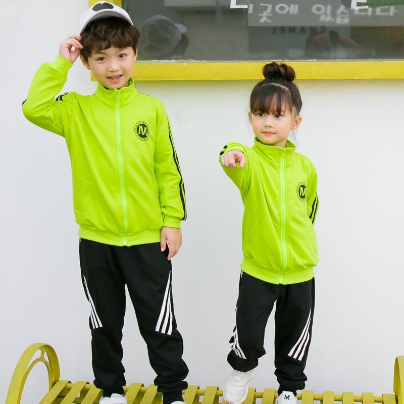 Men's and women's spring and autumn fluorescent green school uniform suit Kindergarten suit Teacher primary school student sports class suit Parent-child suit