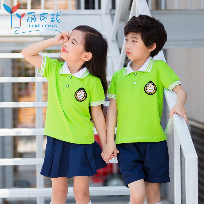 Red green summer POLO shirt School uniform Girls summer POLO shirt School uniform Boys collection plus purchase order minus 1 yuan Single short-sleeved single shorts single short skirt