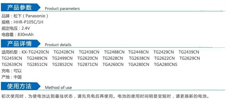 Panasonic Panasonic Wireless Phone 830mAh Rechargeable Battery HHR-P105 2 4V Sub-Mother