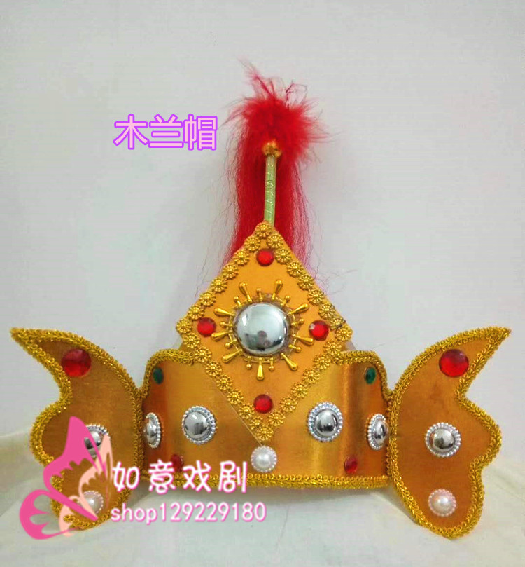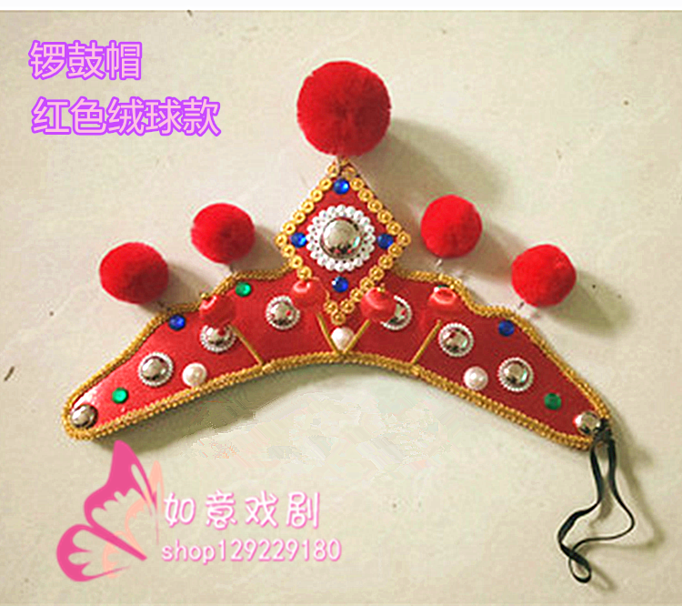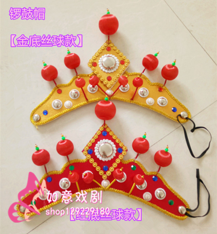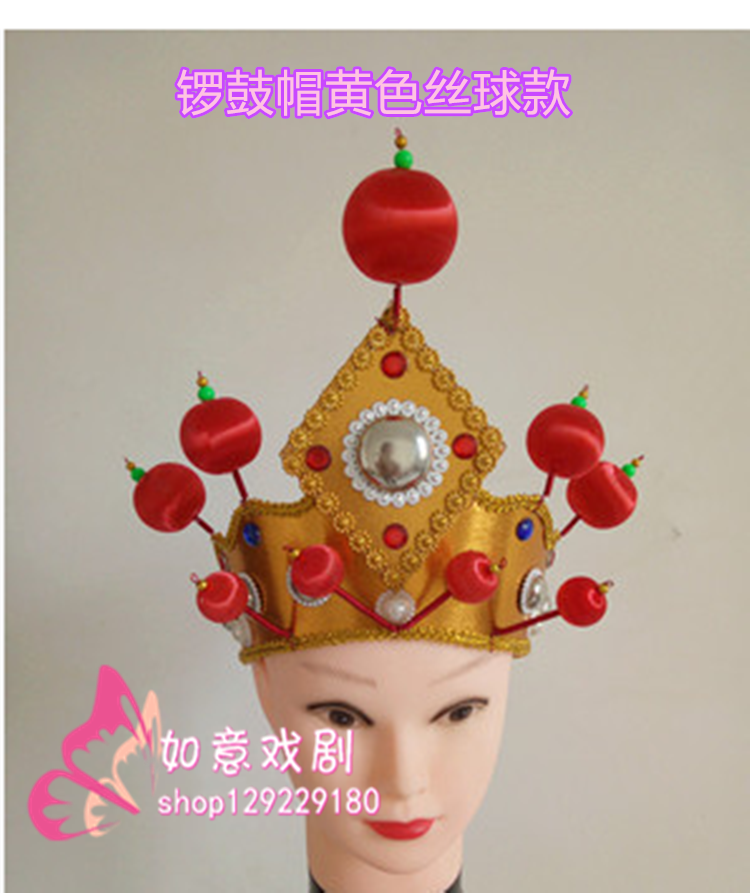 Drum Liezi yellow pompom style Drum Liezi Red pompom style Gong drum cap Yellow silk ball style gong drum cap Red silk ball style gong drum cap Yellow Pompom style gong drum cap Red Pompom style Mulan cap