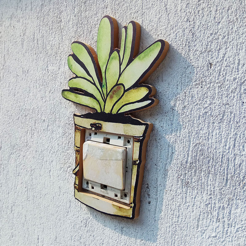 Switch Protective Sheath Wood Switch Patch Wall Patch Nordic Cartoon Potted Room Socket Panel Decoration Switch Sleeve