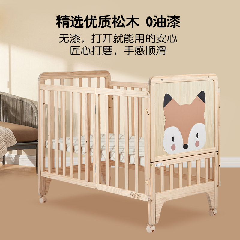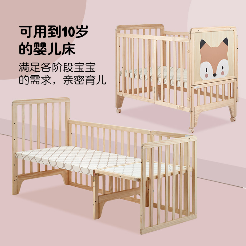 Xiaolong Hapi baby bed splicing bed Movable solid wood paint-free multi-function cradle Newborn small bed