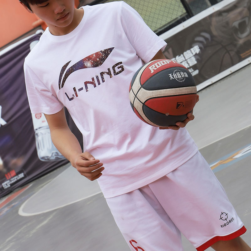 Li Ning short-sleeved men's pure cotton spring and summer sportswear large logo printing T-shirt loose breathable top casual white