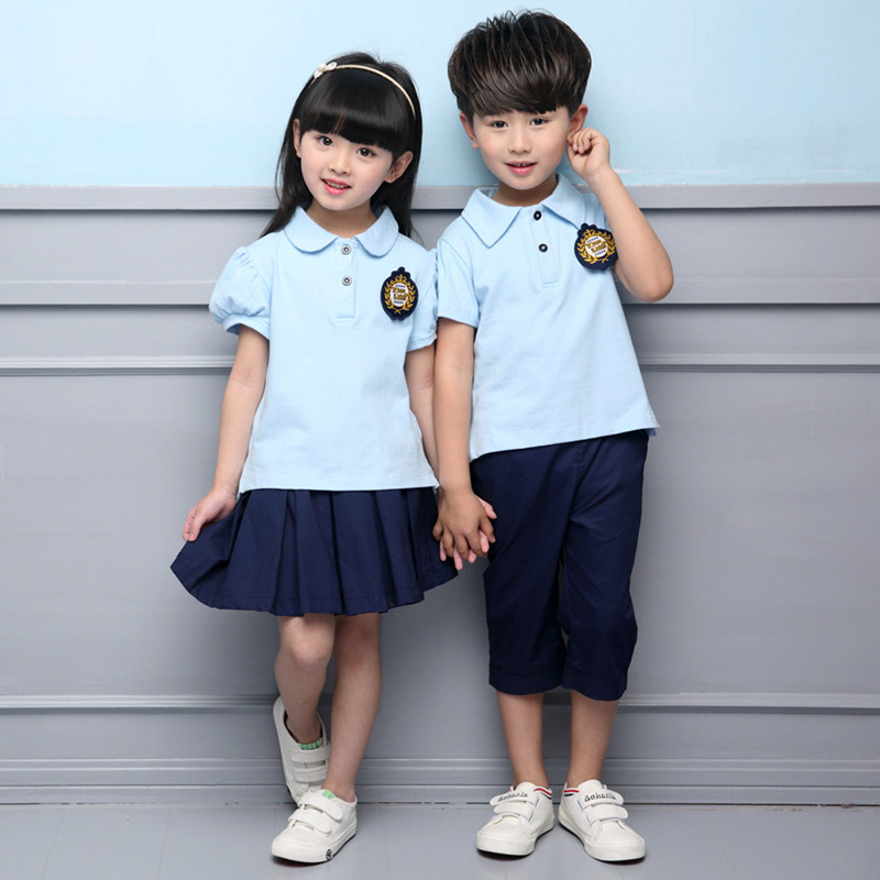 School uniform for primary school students Summer pink short-sleeved polo shirt Kindergarten garden dress Summer graduation British College style class dress