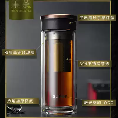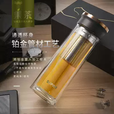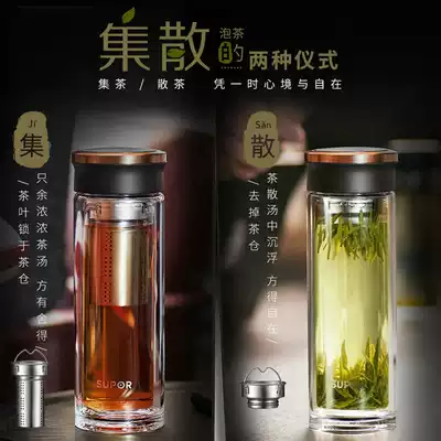 Supor double-layer glass cup with lid portable cup portable water Cup male Lady filter tea separation tea cup