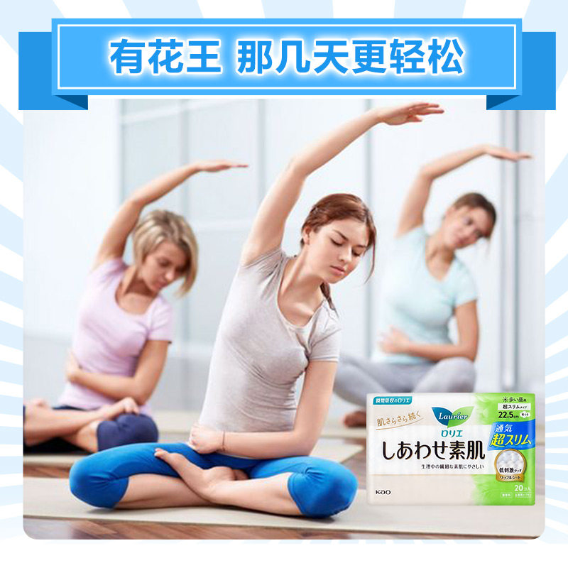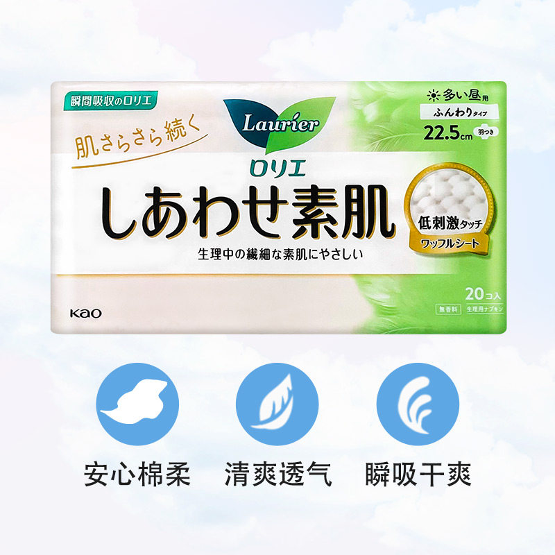 Japan imports Kao Leya sanitary napkins daily sensitive muscle cotton soft wings 22 5cm 20 pieces without fluorescent agent