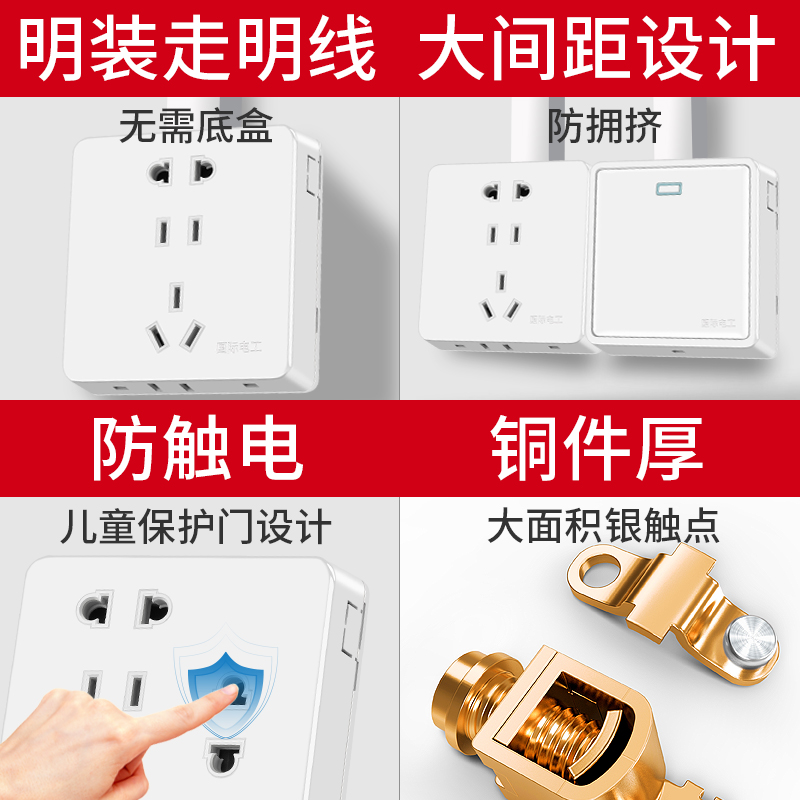 Switch panel wall type home mobile phone charging port with open cable 10A power supply 5 five-hole socket with USB
