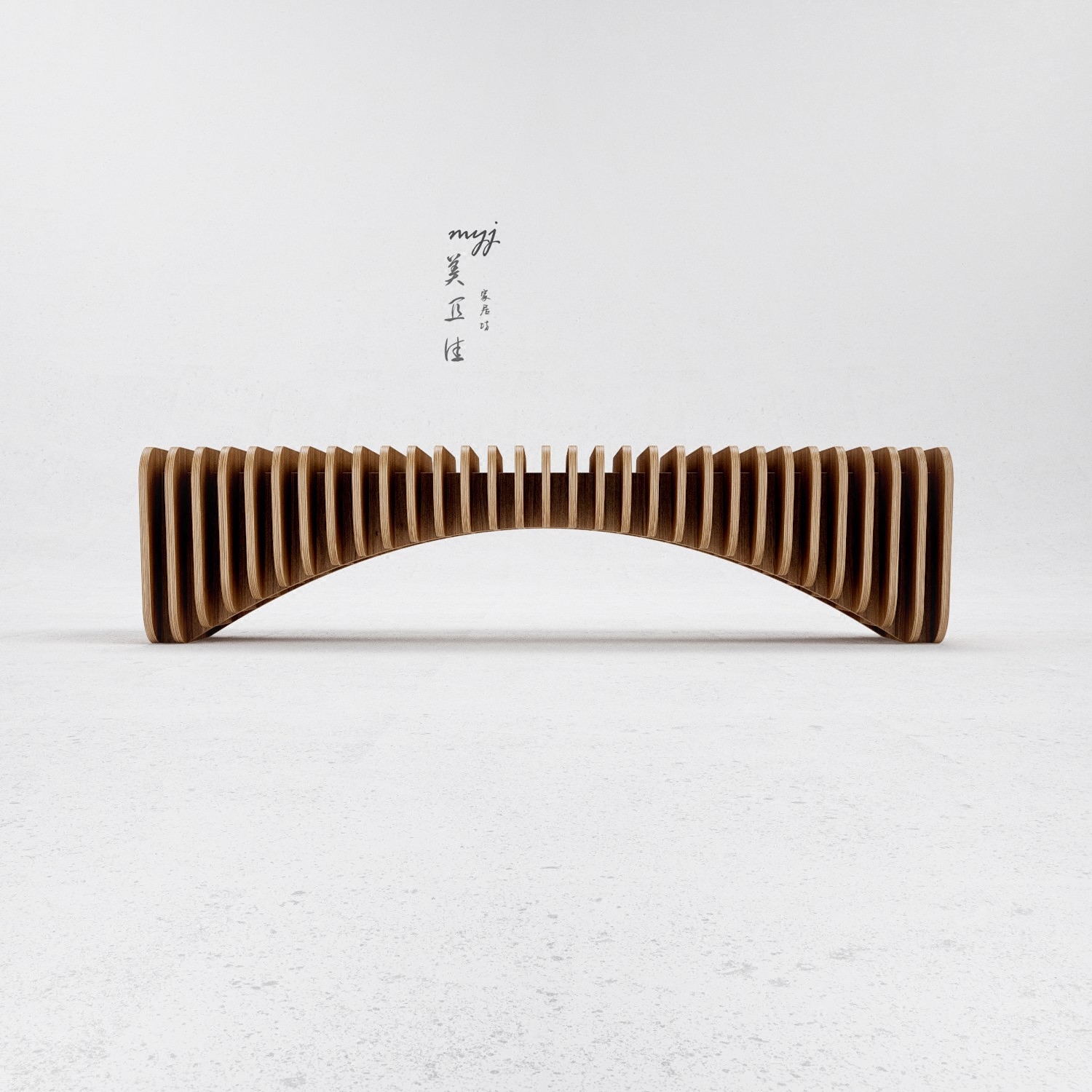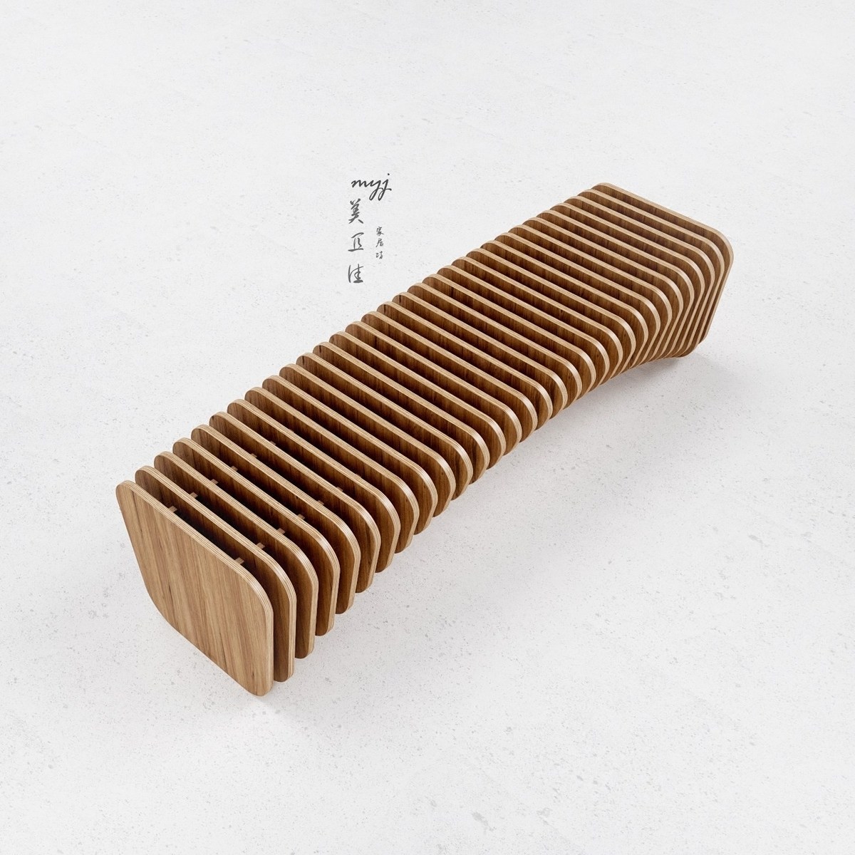 Plaza hotel lobby waiting stool solid wood Nordic creative geometric bench shopping mall rest stool model room club stool