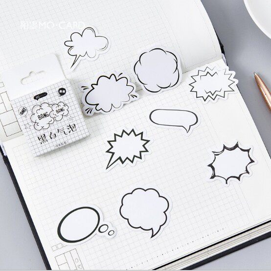 Mo Mo creative boxed hand account sticker black and white bubble dialog decoration diary diy alien sticker 50 pieces
