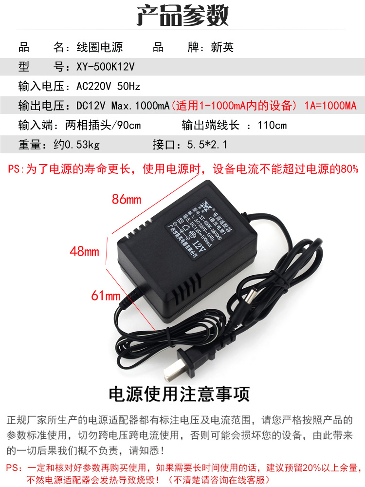 Xinying Xy-500k 12V1000MA Voltage DC power supply 12v1a transformer Power Connector