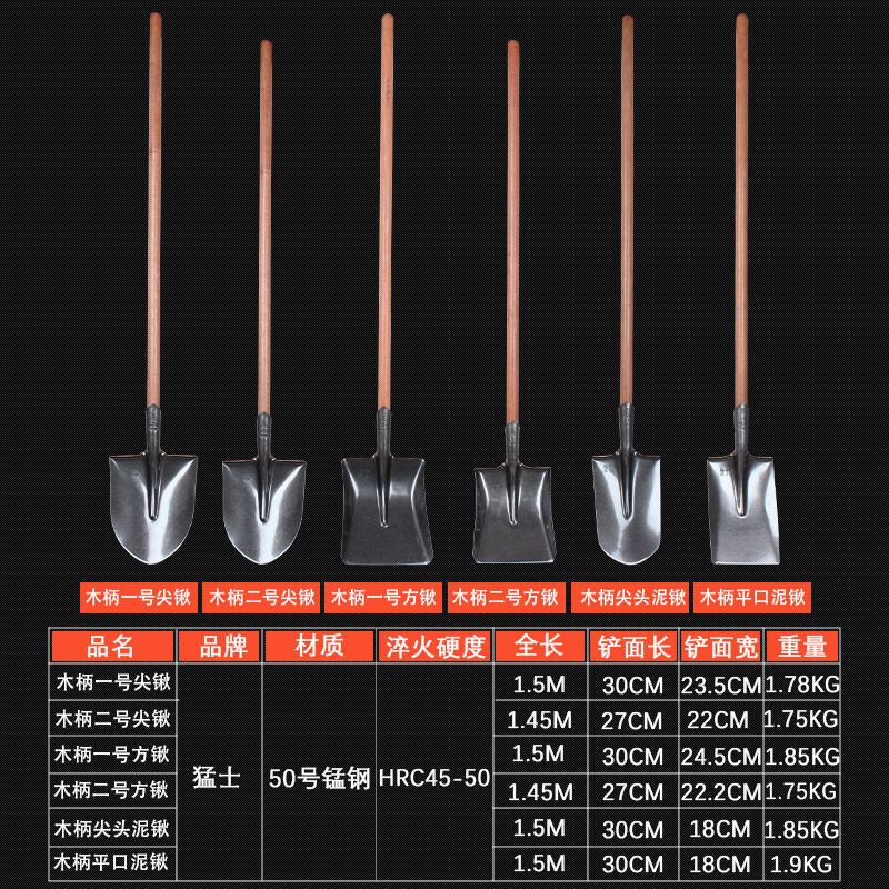 No. 1 Pointed Shovel Head No. 1 Square Shovel Head Flat Shovel Head Tip Mud Shovel Head No. 2 Square Shovel Head No. 2 Pointed Shovel Head 1.2 meters Fine Wooden Handle No. 1 Pointed Shovel Wooden Handle No. 1 Square Shovel Wooden Handle No. 2 Pointed Shovel Wooden Handle No. 2 Square Shovel Wood Handle Tip Mud Shovel Wood Handle Flat Shovel Shovel 1.4 meters Fine Wooden Handle