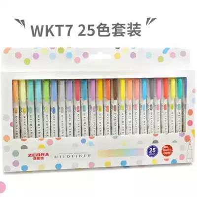 25 color set Japanese zebra zebra Mildliner light color series double fluorescent pen set WKT7 marker pen students take notes special soft marking key mark gift box packaging gift
