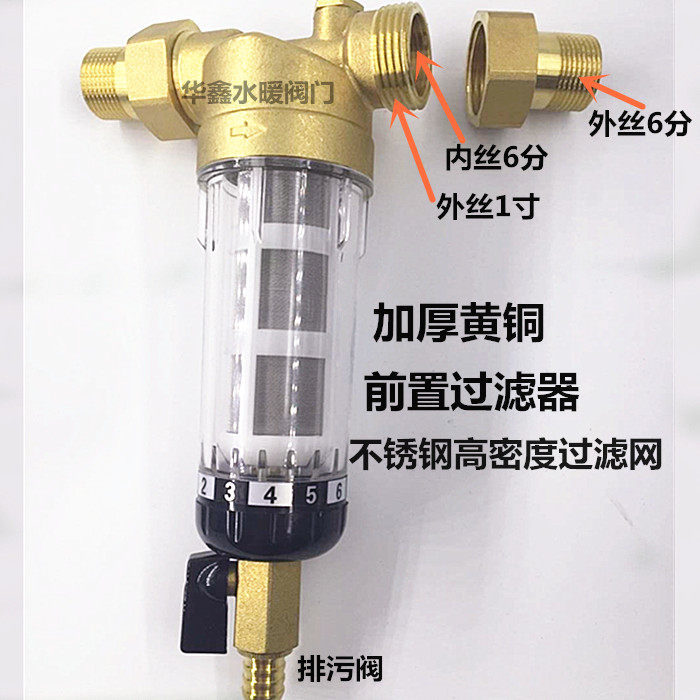 Copper Valve Front Filter Large Flow PPR20 Joint Water Purifier Filtration Clear impurities thread 6 points 4 points-Taobao