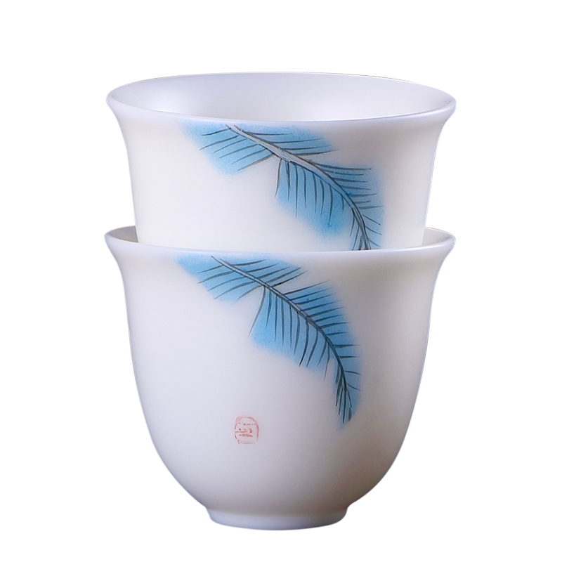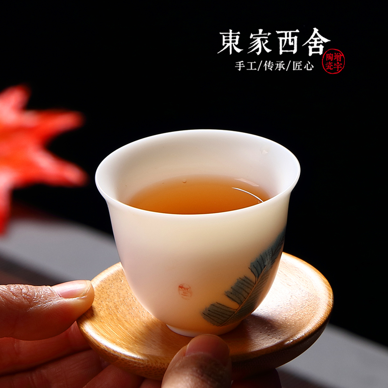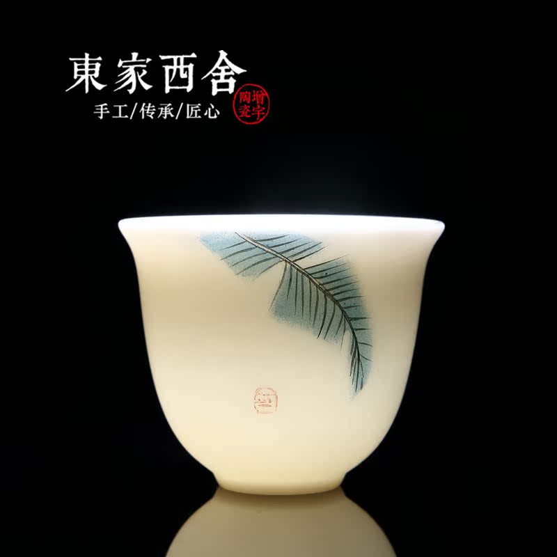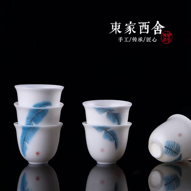 East Home Kung Fu Tea Cup Defied White Porcelain Vegetarian Fever Hand Painted Goat Grease Jade Porcelain Ceramic Small Tea Drinking Cup Master Cup of tea