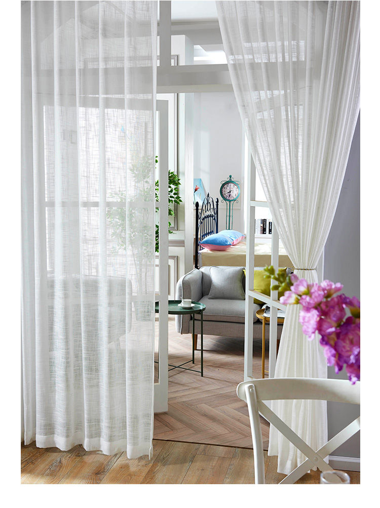 Thickened white sand curtain curtain fabric translucent impermeable linen curtain Balcony shading bay window Finished special clearance