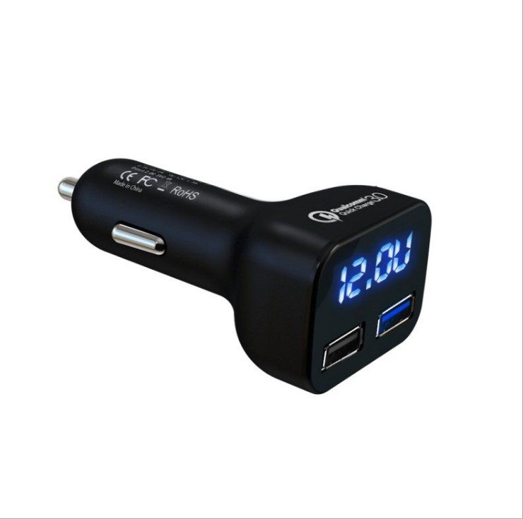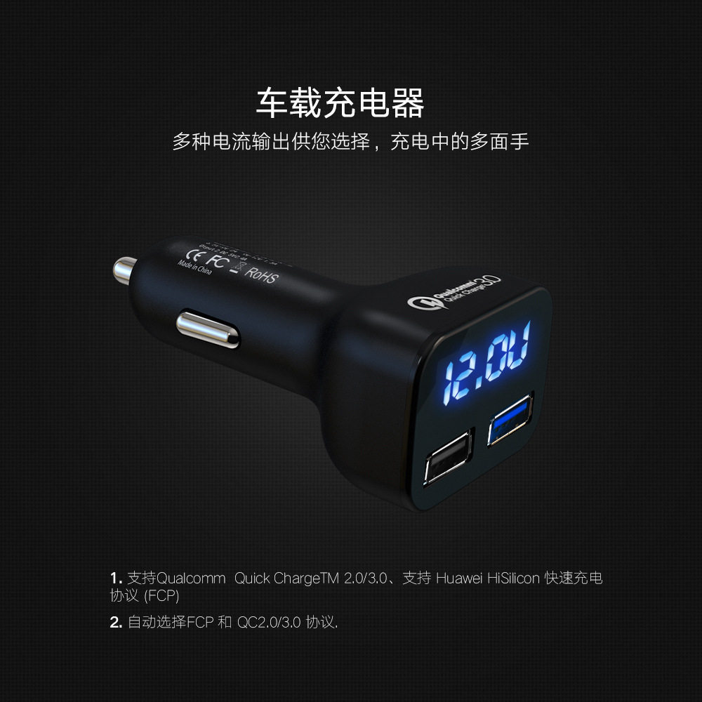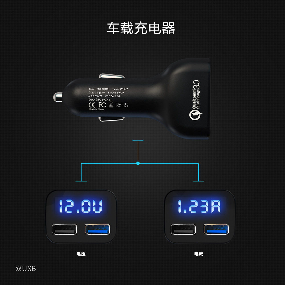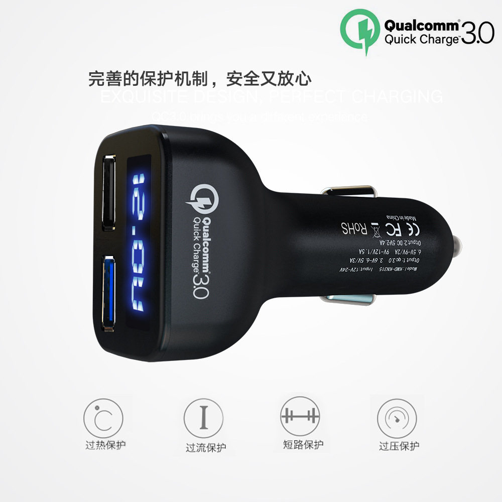 Car charger new display dual USB fast charge one drag two charge cigarette lighter power car mobile phone flash charge