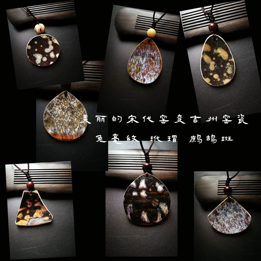 Song Dynasty Jizhou kiln yao change Tianmu ancient porcelain pendant necklace jewelry kiln change charm take to the museum