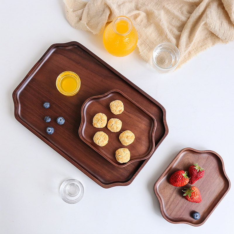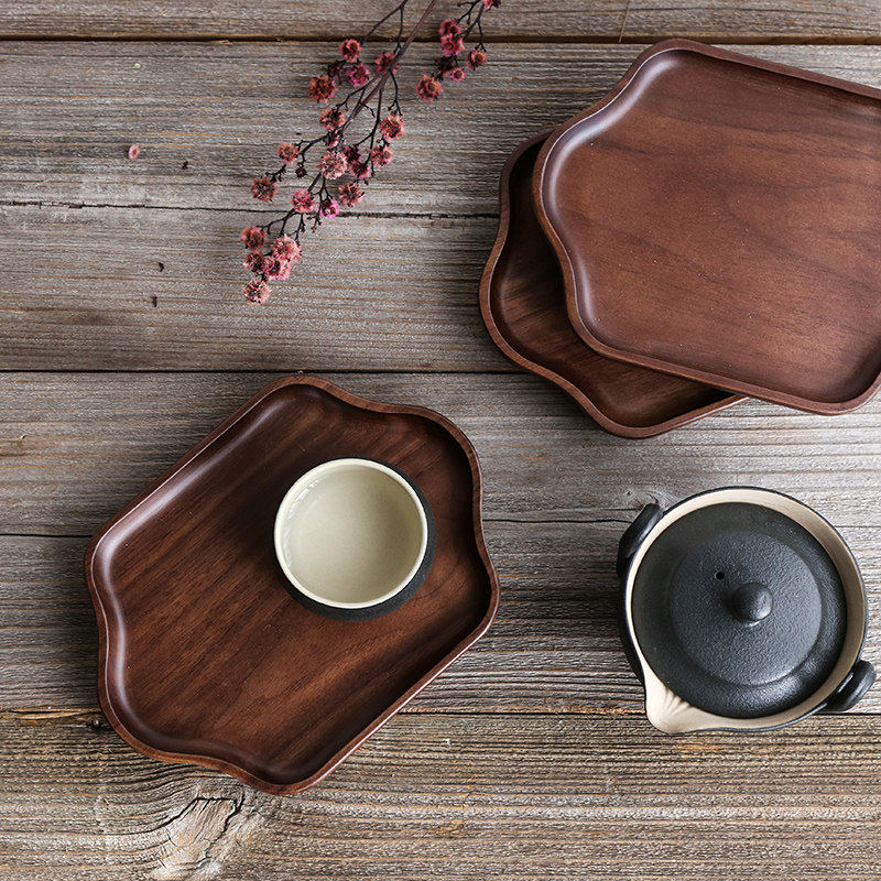 Sherry Chinese style black walnut pure solid wood tray snacks fruit snack plate wooden saucer plate tea tray Tea Sea