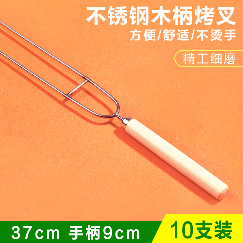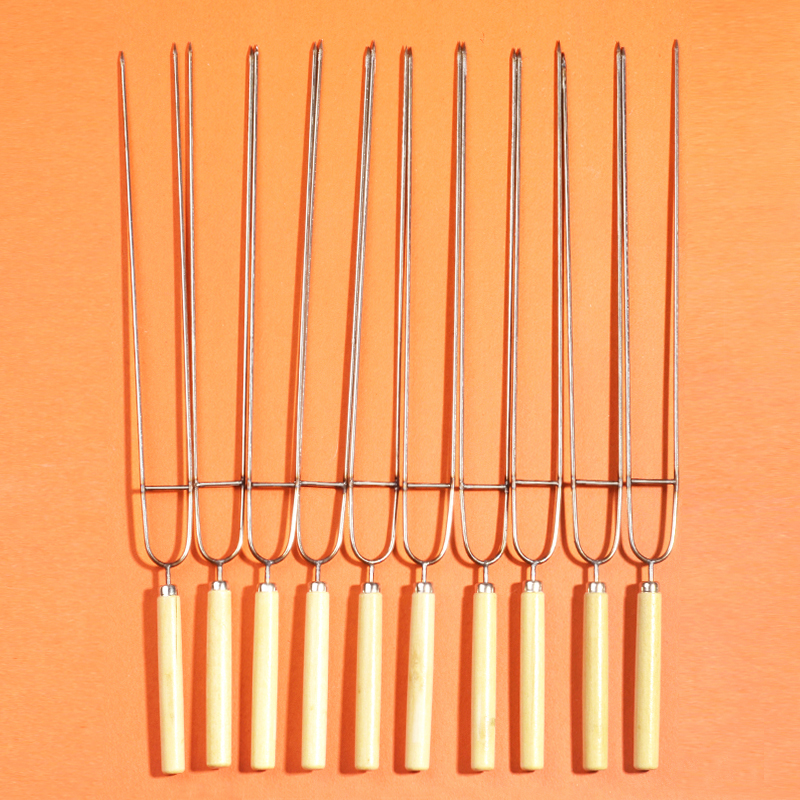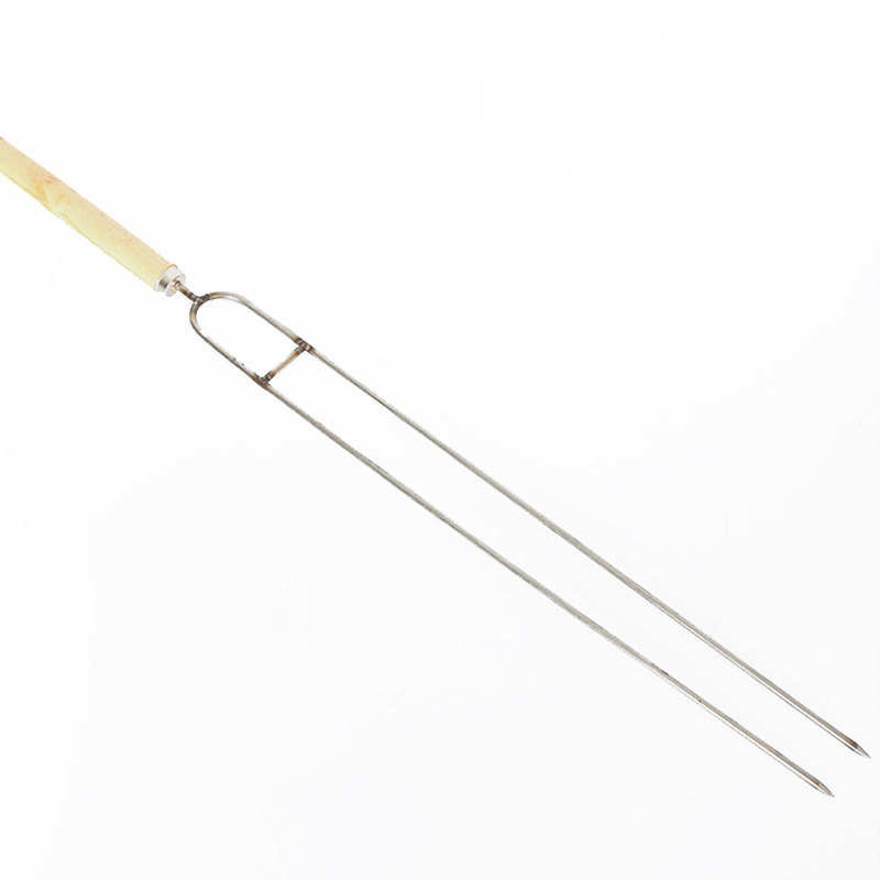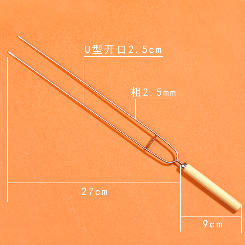 Stainless steel barbecue fork roast needle chicken wings lamb leg skewers u barbecue chisel thick wooden handle barbecue double fork stick