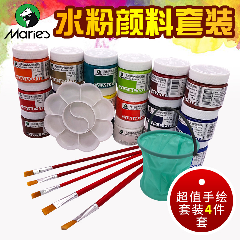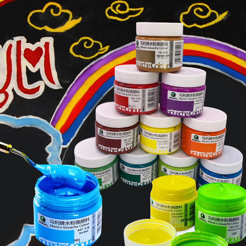 Horse power brand gouache Yan blackboard newspaper pigment set Erasable children's painting pigment Beginner Marley