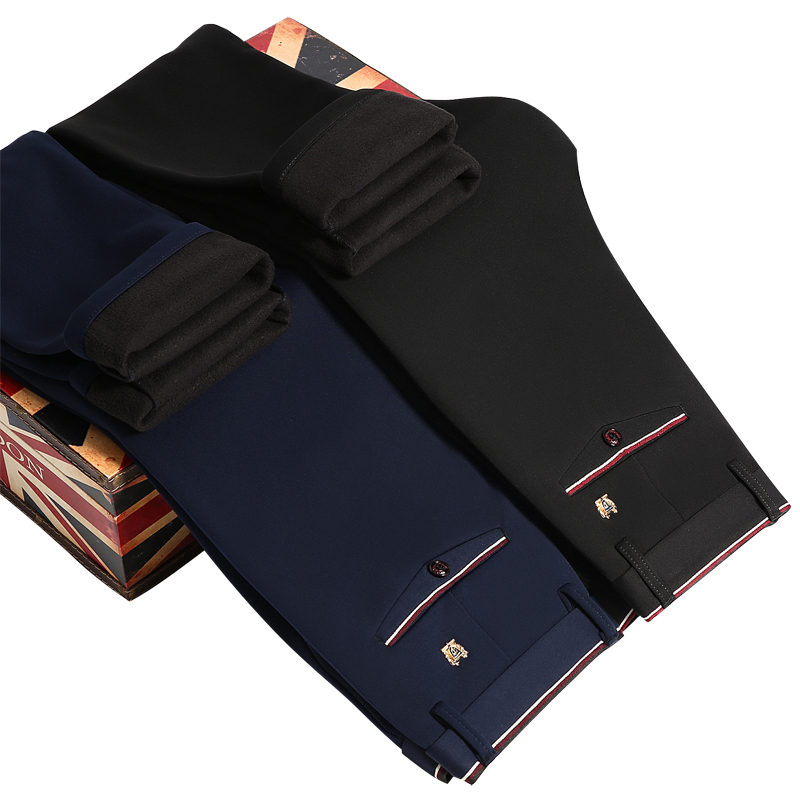 Winter men's casual pants high stretch knitted pants work plus velvet men's pants thick pants slim straight pants