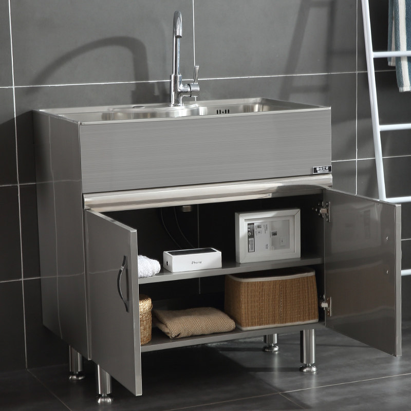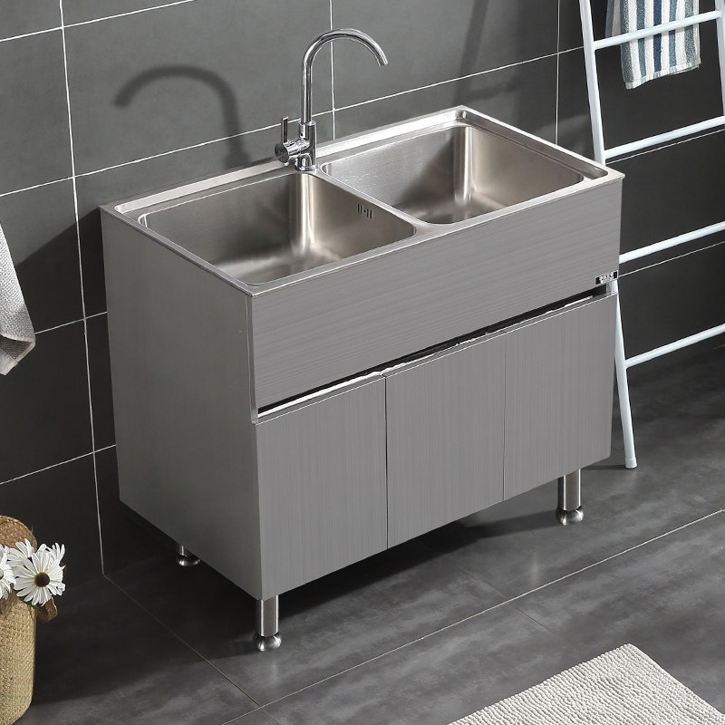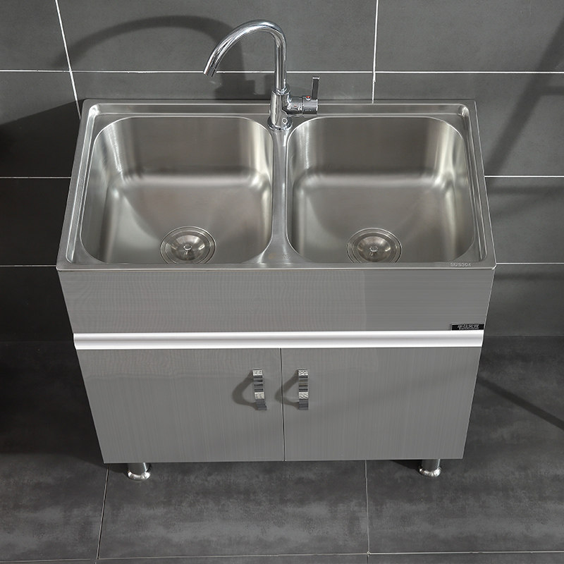 304 Stainless Steel Sink Cabinet Double Sink Kitchen Wash Vegetable Basin Balcony Cabinet Laundry Cabinet Floor Type Bath cabinet Handwashing pool