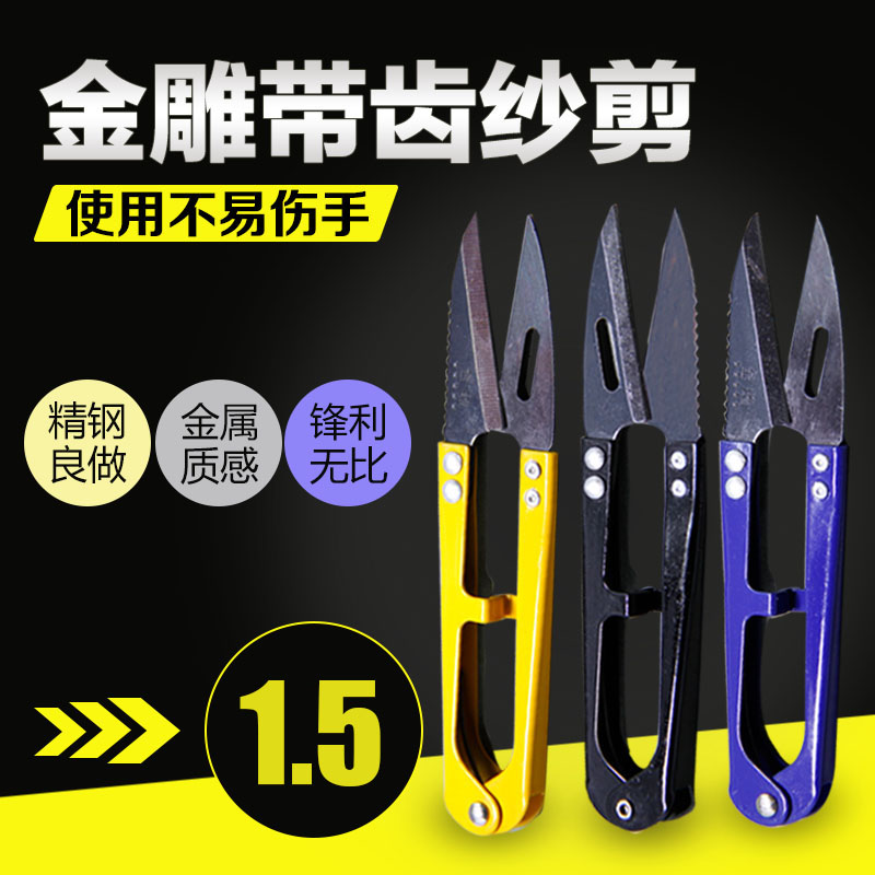 Gold Sculpture Toothed Yarn Cut small scissor wire head sheared with a smaller cut than Zhang Koizumi Daji small cut U type cross embroidered scissors