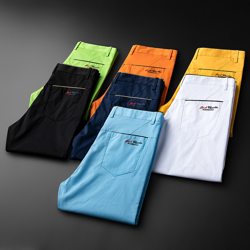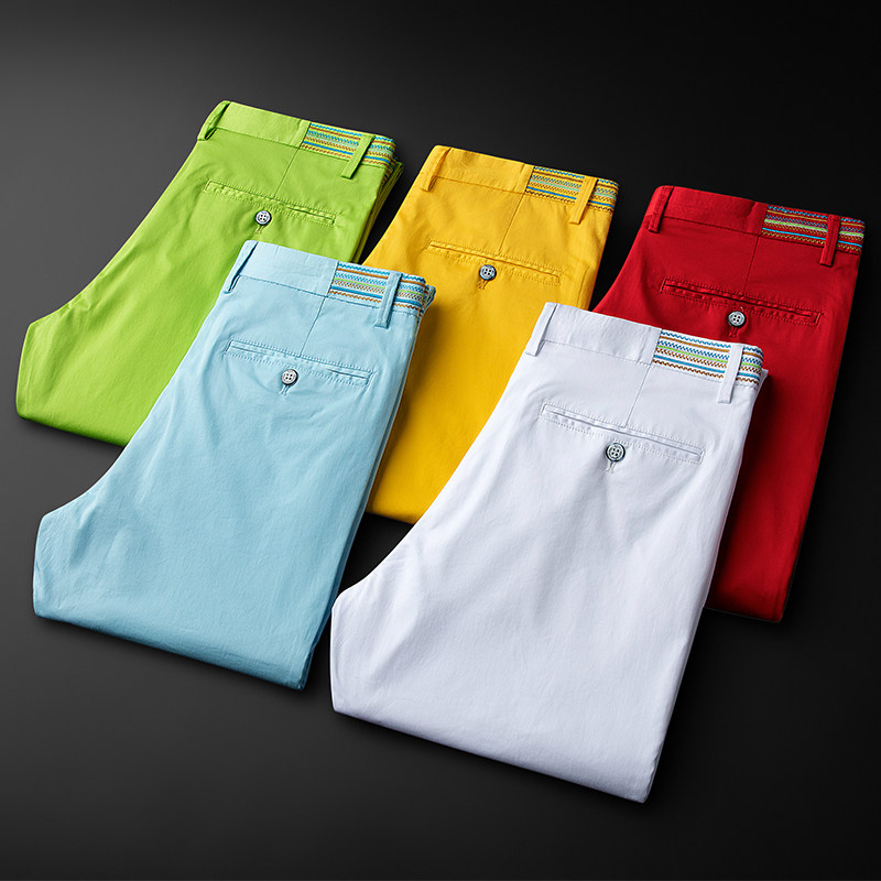 Summer casual pants men's thin men's colorful long pants embroidered young handsome white pants men in small footbots