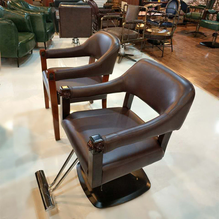 Simple hair chair retro solid wood hair chair special chair for hair salon high-grade hair cutting chair iron dyeing chair