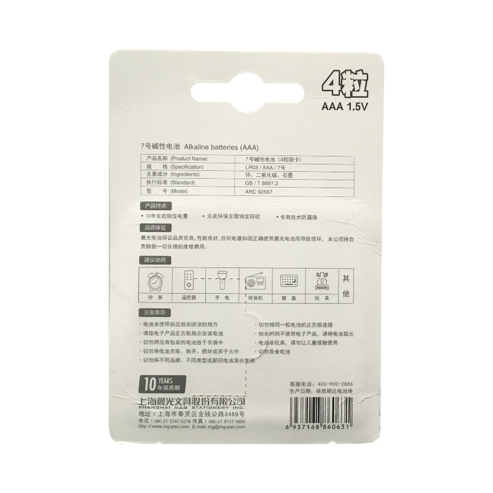 Morning light 7 Number of alkalis batteries AAA 1 5V No mercury environmentally friendly suction card loaded with 4 grain 92557