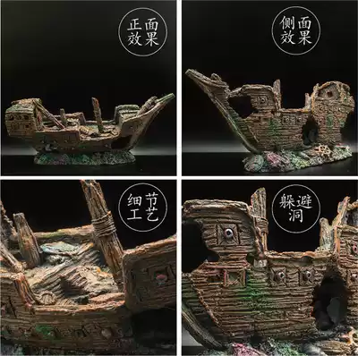 Fish tank landscaping decoration ship pirate ship fish and shrimp shelter resin ship shipwreck ornament-Warship No. 2