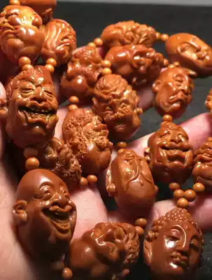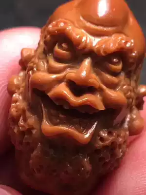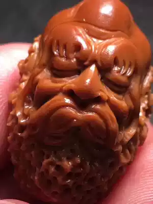 Nuclear carving fan famous Han Zhongjun single-sided eighteen Arhats Old oil nuclear red material realistic arhats handmade carving