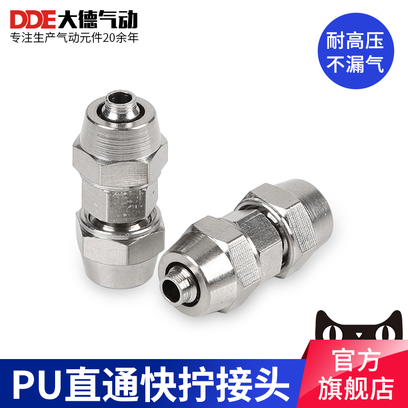 Boutique nickel plated nickel plug plug 6 8 10 12 16PU straight through two - way water pipe joint