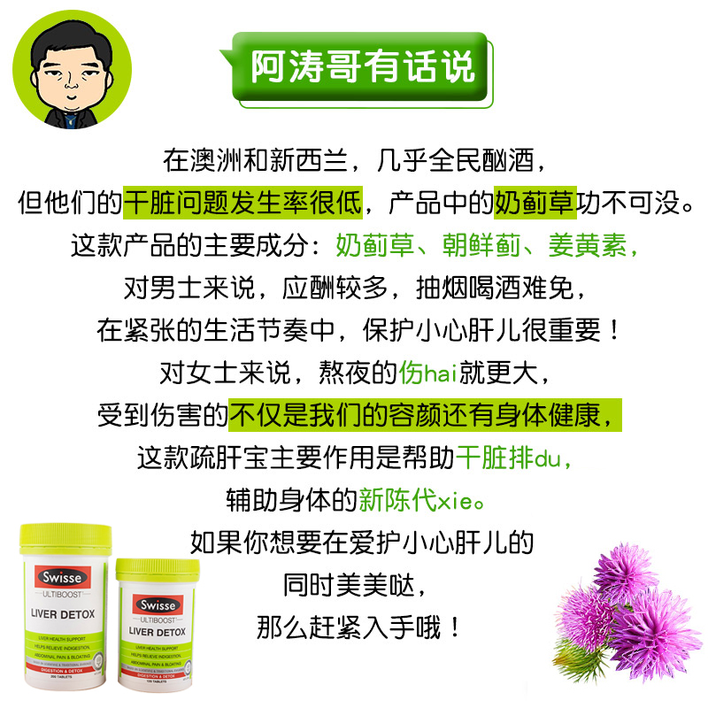 Australian Swisse Milk Thistle Grass Sheet Palate Protective Evening Tablets Svy Poetry Protective Liver Tablets Liver-Awakened Wine Staying Up All Night 200 Grain