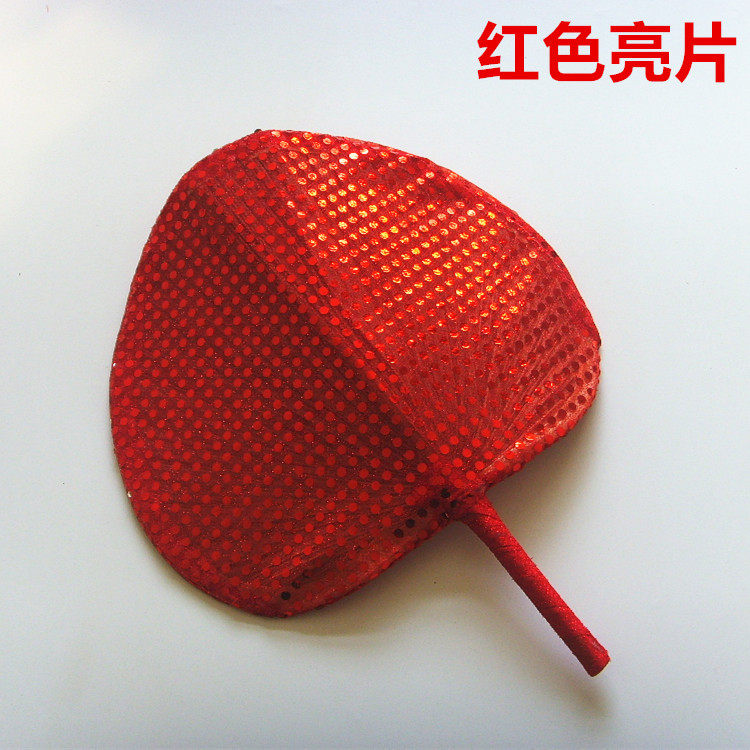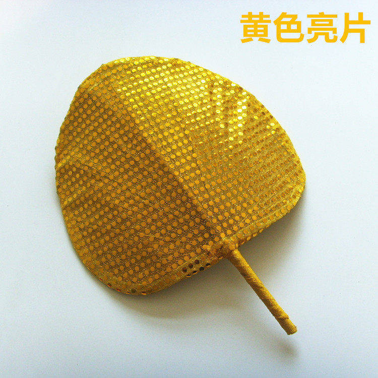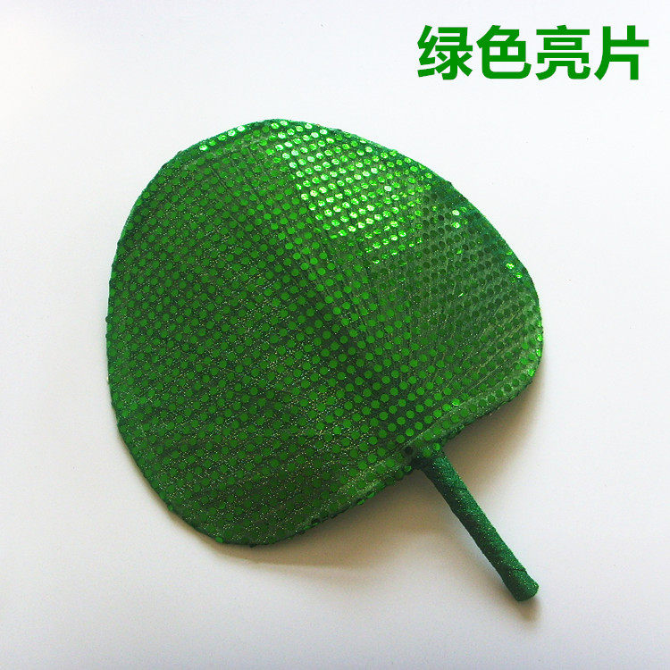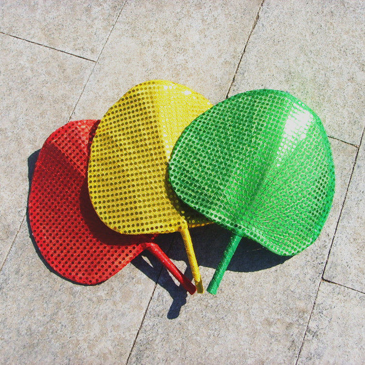 Large red sequined fan, large green sequined fan, large yellow sequined fan, large blue sequined fan, large red sequined fan, small green sequined fan, small yellow sequined fan, small blue sequined fan